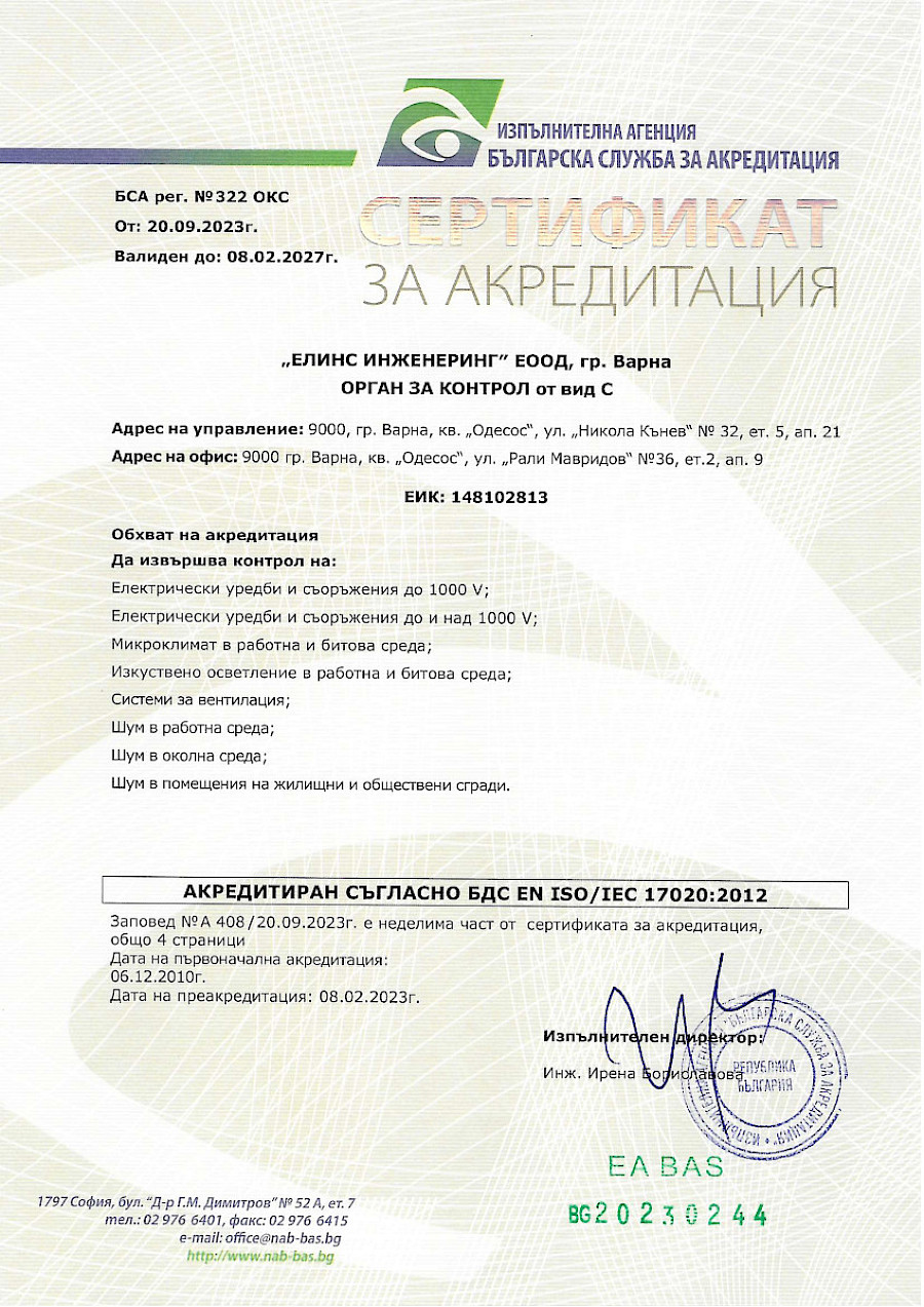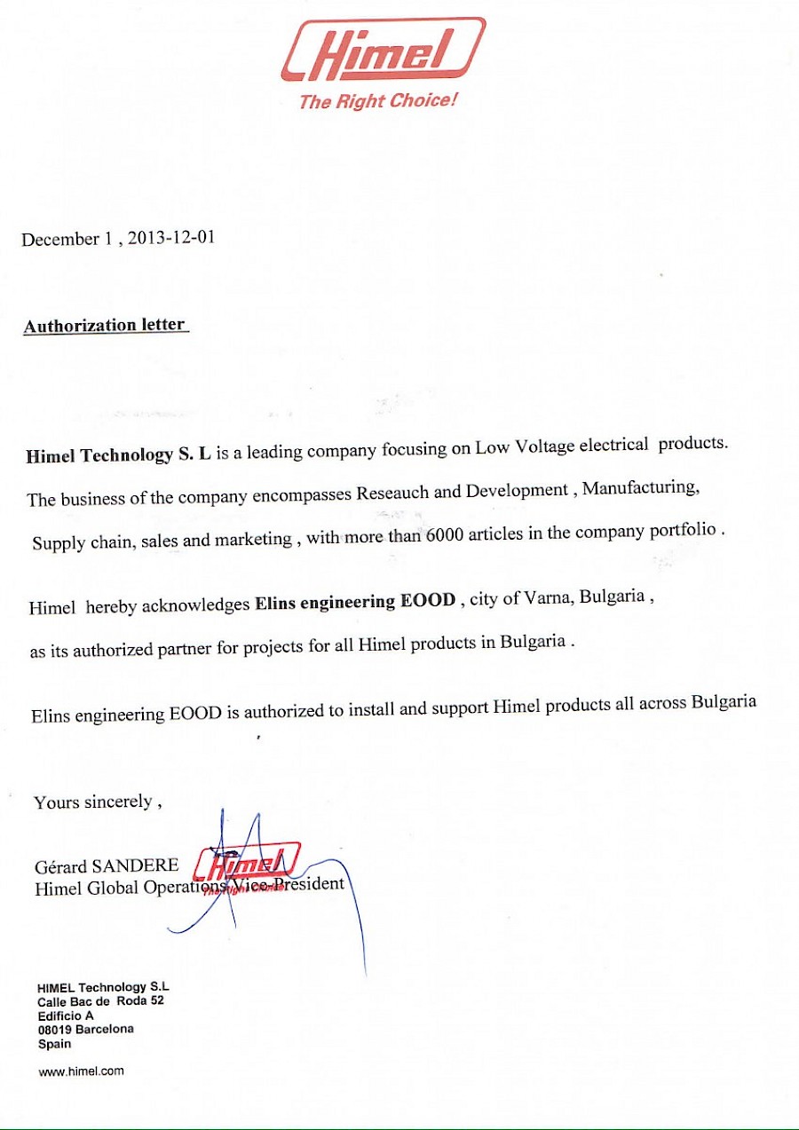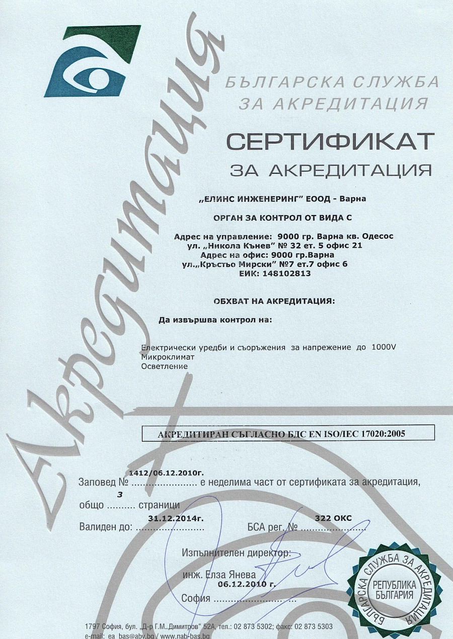 За предлагане на качествени услуги и удовлетворяване изискванията на своите клиенти, дружеството е придобило следните лицензи и сертификати: Сертификат на ОКС при ЕЛИНС ИНЖЕНЕРИНГ ЕООД Удостоверение от Himel Technology S.L.