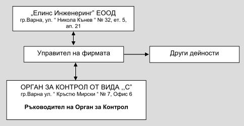 Органът за контрол от вида “С” функционира от 2008 г., като обособено самостоятелно звено, относно декларирания обхват на измервателната и контролната си дейност при „Елинс Инженеринг” ЕООД - гр. Варна. Органът за контрол притежава изградена система за управление, където са описани неговите функции и областта на компетентност съгласно изискванията на стандарта БДС EN ISO/IEC 17020:2012.